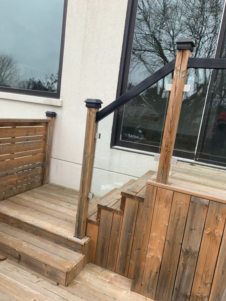 Black outdoor glass rail stair